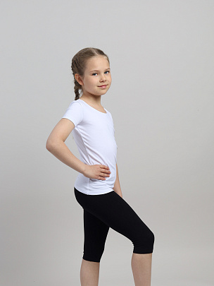 Футболка для девочки с коротким рукавом. Вырез горловины круглый, окантован бейкой из основного полотна.