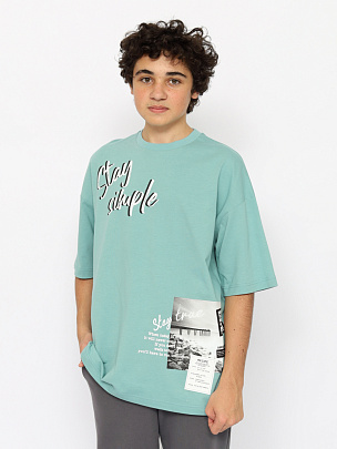 Футболка мужская оверсайз из кулирной глади. С рукавом до локтя. Воротник из эластичной рибаны. На полочке декоративный принт (ЗА ГРАНЬЮ БУДУЩЕГО). Удлиненная спинка, разрезы по бокам.