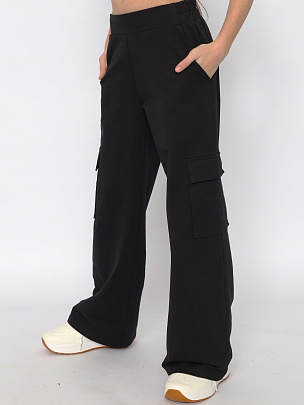 Модные брюки-карго с накладными карманами подойдут в качестве школьной формы, а также повседневной одежды. Изготовлены из футера. Свободный силуэт и пояс на резинке не стесняют движений. Брюки имеют карманы достаточной глубины.