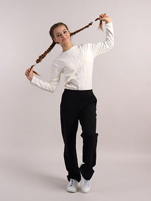 Брюки прямого силуэта с карманами подойдут в качестве школьной формы, а также повседневной одежды. Изготовлены из футера. Прямой силуэт и пояс на резинке не стесняют движений. Брюки имеют карманы достаточной глубины.