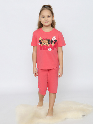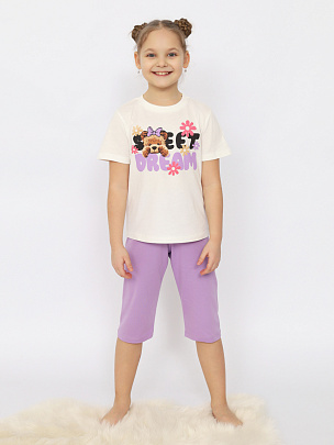Пижама для девочки из футболки и шорт. Футболка оверсайз с круглой горловиной и короткими рукавами, свободного кроя с милым принтом. Шорты, без карманов из набивного хлопка, имеют удобную посадку, благодаря широкому эластичному поясу. Изделие изготовлено из мягкого и приятного на ощупь полотна. Пижама с шортами - это удобная и универсальная домашняя одежда, в которой можно спать, но и провести весь выходной.