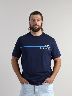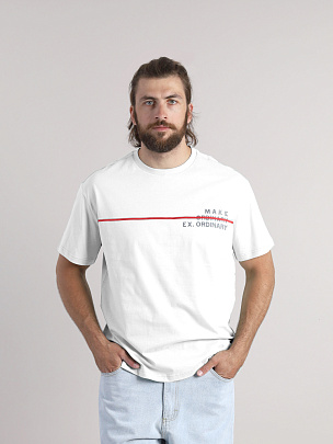 Прямая футболка для молодых мужчин с короткими рукавами. Горловина круглая, оформлена эластичным воротником. Футболка выполнена из кулирки повышенной плотности. Перед и спинка футболки декориованы принтом "никогда не сожалей", "привет", "пока".
