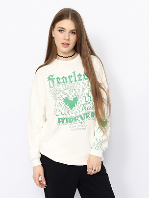 Молодежная толстовка oversize c длинными рукавами и креативным принтом спереди и на рукаве (всегда оставайся верной и бесстрашной).