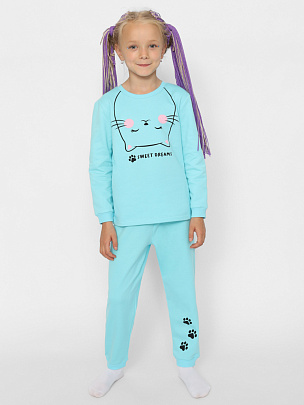 Комплект для девочки (джемпер, брюки) бирюзовый